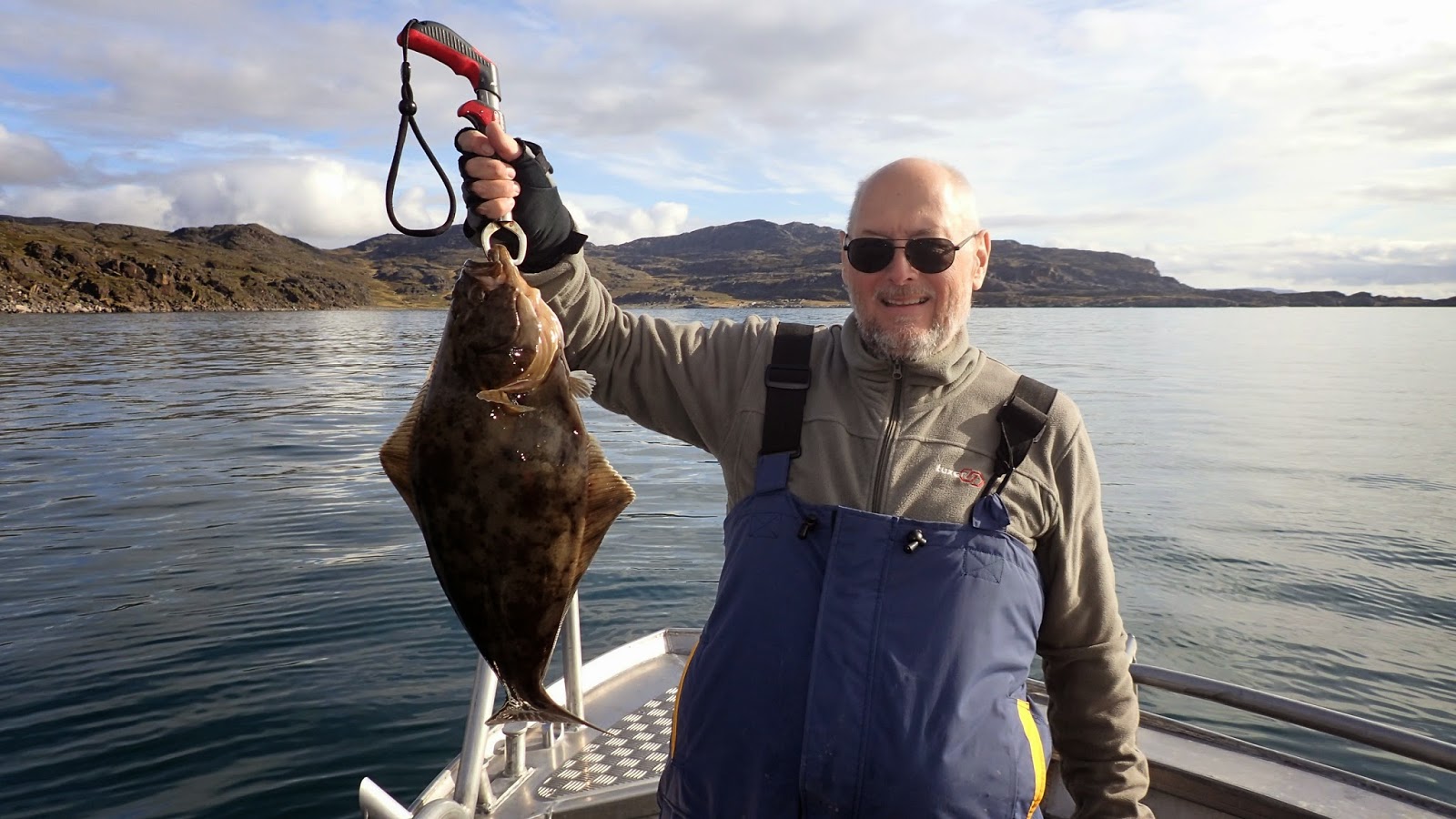 Sista dagen började vi med att jaga torsk och storsej, ett försök som var nära att sluta i fiasko. Superfint väder med bara lite ström gjorde att inte så mycket fisk samlades på topparna. På vägen tillbaks provade vi ett grund som guiderna hade tipsat om. Här släppte det rejält och vi fyllde backen med granna torskar i 5-6 kilosklassen. Efter ett tag så kände jag det typiska hällefludraruset men när jag vevade upp så kom det bara upp en torsk eller...